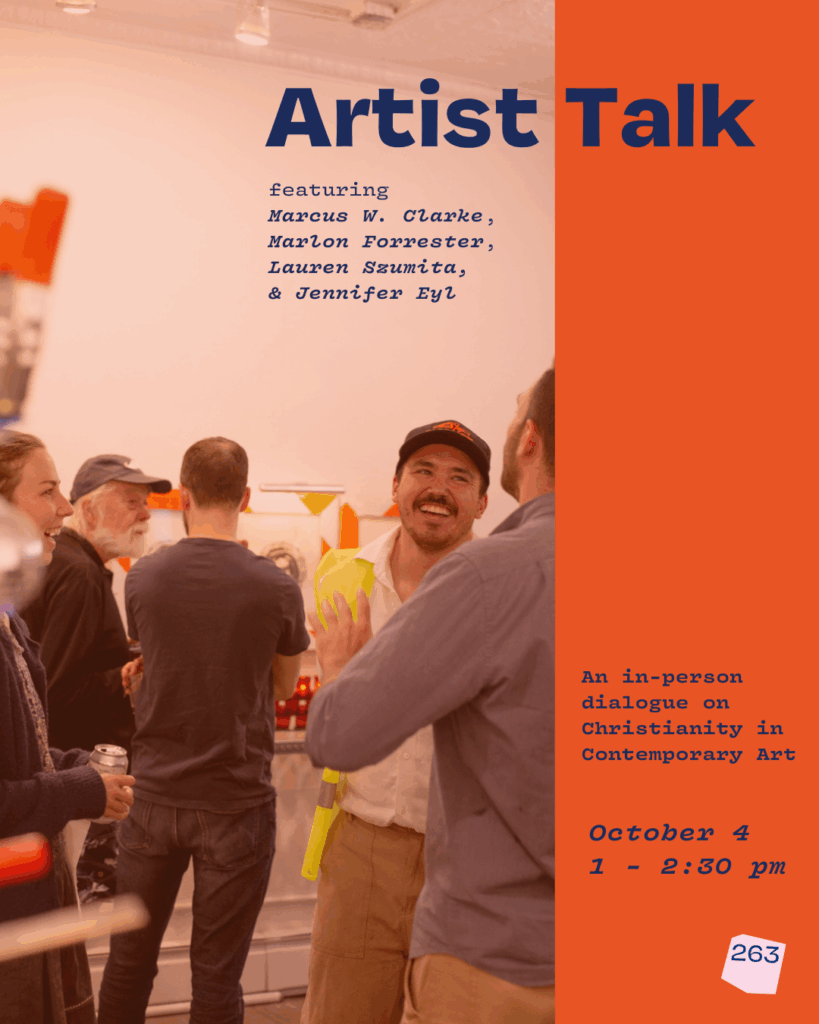 Join us for an engaging dialogue on depictions of Christianity in contemporary art. This in-person panel will feature our artist on view, Marcus W. Clarke, on the closing day of his show All Glory, Laud, and Honor, alongside artist Marlon Forrester, Tufts University religion chair Dr. Jennifer Eyl, and Holy Cross’ Cantor Gallery director Lauren Szumita. For biographies and more information, please see Eventbrite for more details.