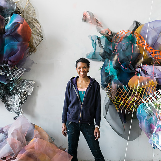 Cicely Carew is a Boston-based artist, educator, and mind-body facilitator whose multimedia work centers radical joy and liberation. Her artistic practice spans immersive installations, collages, sculptural assemblages, painting, printmaking, and video/sound meditations, united by a vibrancy of color and multi-dimensional layering. Her pieces invite viewers to ease into a realm of healing and play. Carew’s recent installations and public art commissions include Ambrosia, 5,000 sq ft installation at the Prudential Center, the solo exhibition BeLOVEd at the Fuller Craft Museum, and a Foster Prize exhibit at ICA Boston. Locally, she has served as an Artist-in-Residence at the Shady Hill School, taught mixed media and printmaking for the New Art Center and Maud Morgan Arts, and taught screenprinting at Lesley University. Carew completed her MFA at Lesley Art + Design and her BFA at Massachusetts College of Art + Design.