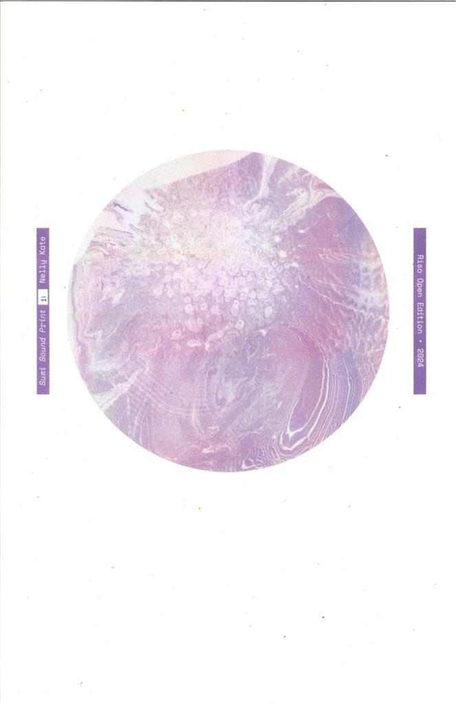 The current collection of works I have on view in my flat file drawer at the gallery are risographs made from a series of suminagashi sound prints that visualize sound waves through transference.