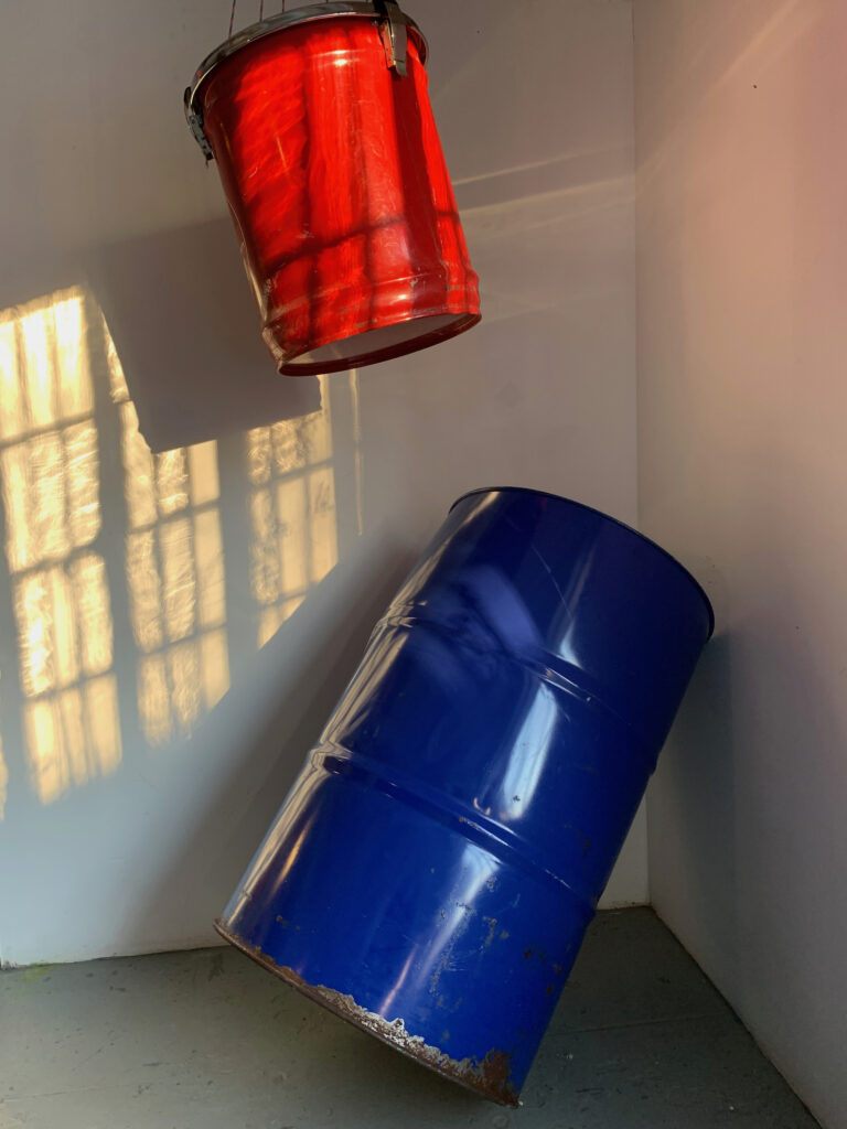 The most unusual material I use is probably 55-gallon steel barrels. I repurpose them to make screens, speakers, benches, stools, and chairs; recently, I made one into a water fountain! I’m really interested in how to transform trash into sophisticated objects while leaving it recognizable.